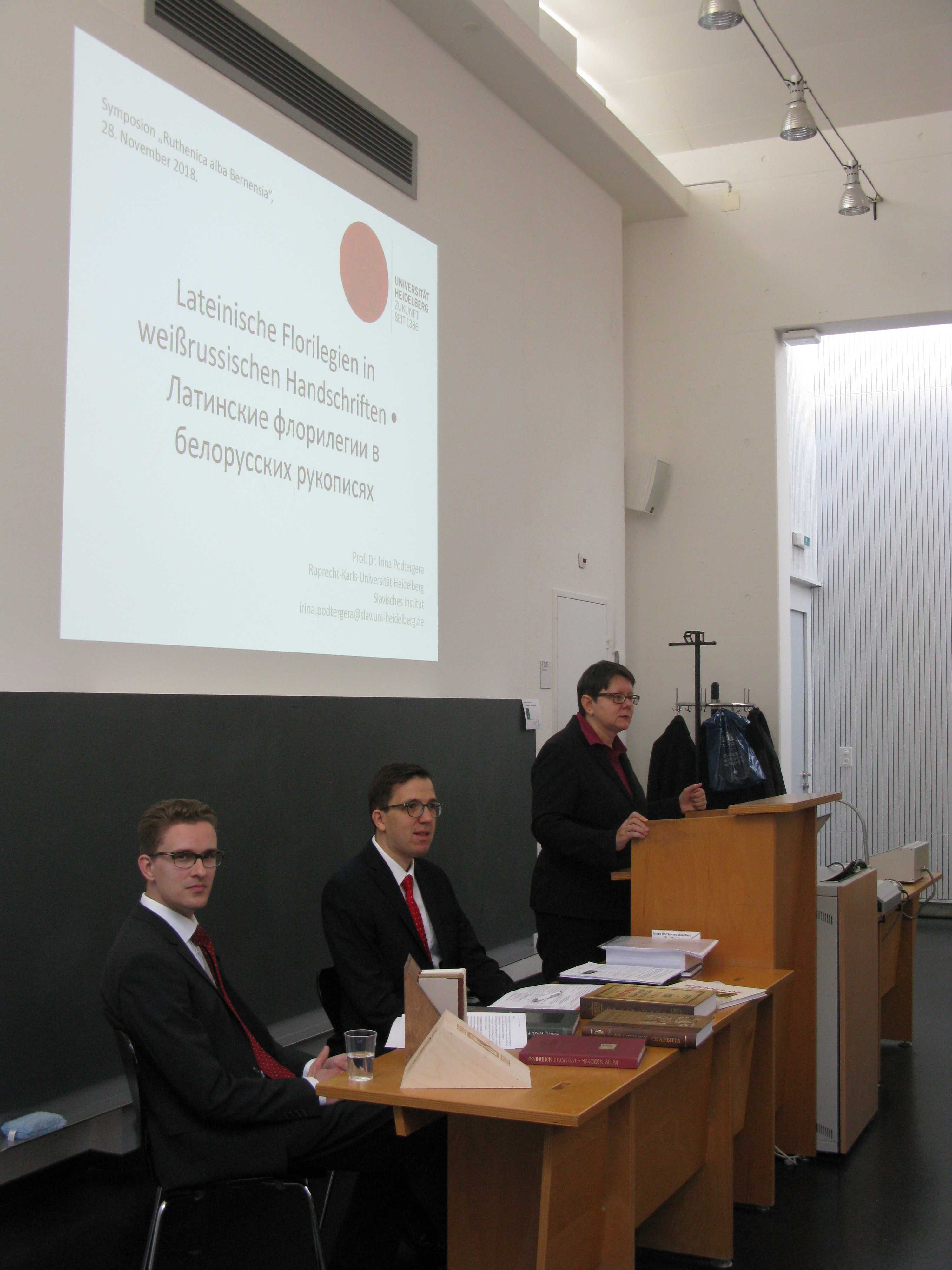 Frau Prof. Dr. Irina Podtergera (Universität Heidelberg) hält einen Vortrag zu lateinischen Florilegien in weissrussischen Handschriften.